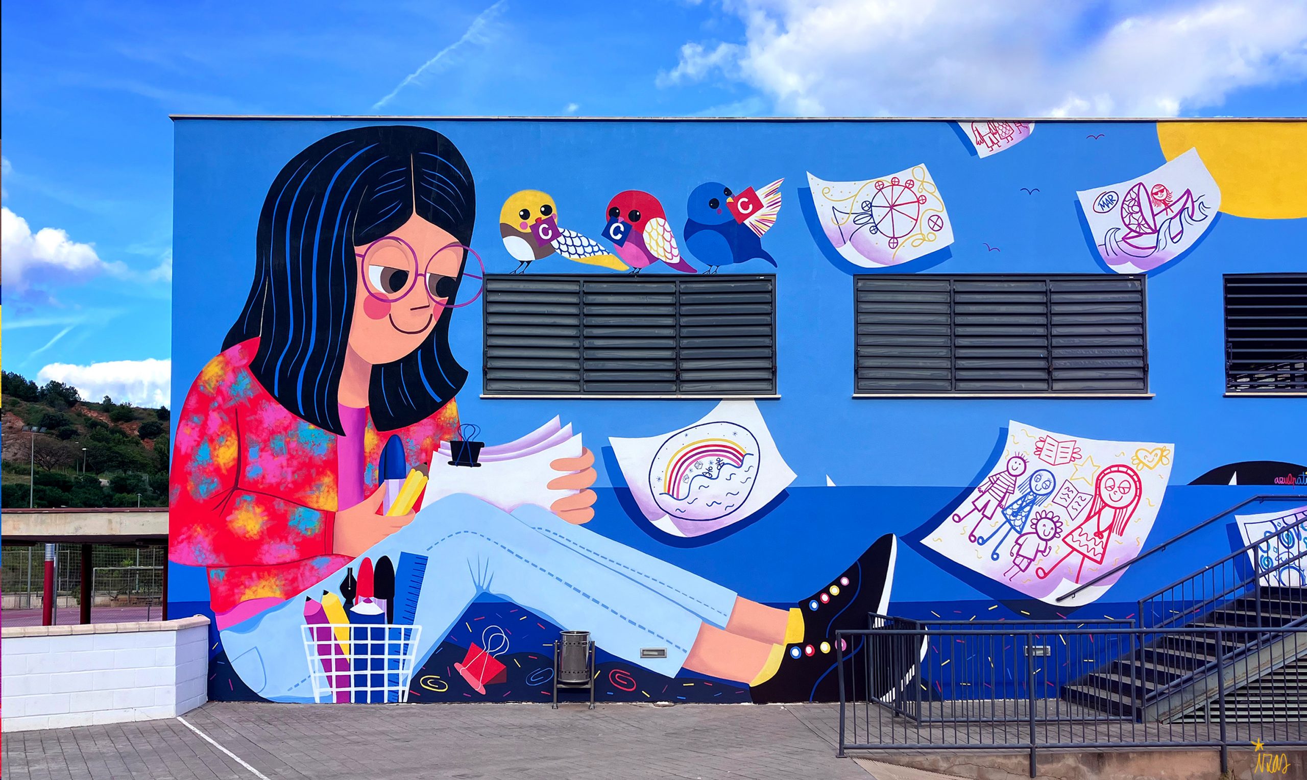 Soy Izas, ilustradora y muralista, y os puedo ayudar a conseguir el cole que soñáis.