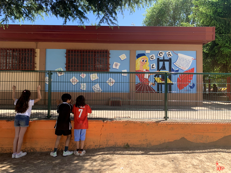 Dibujando la Palabra Diseño alumnado Mural escolar mural figuras Mural participativo