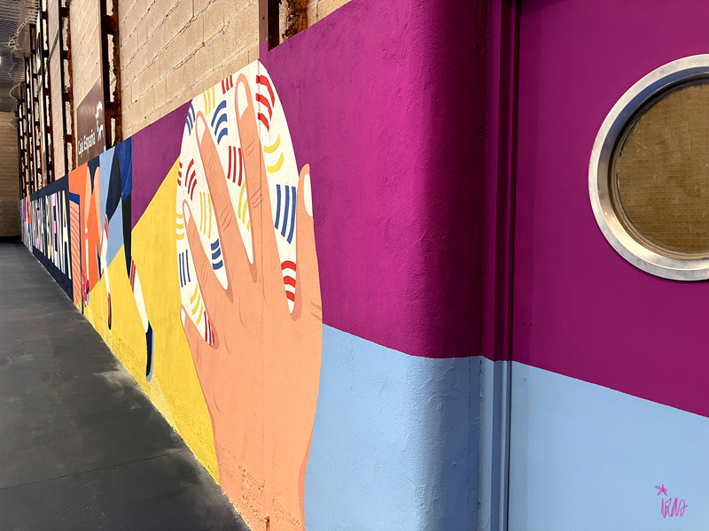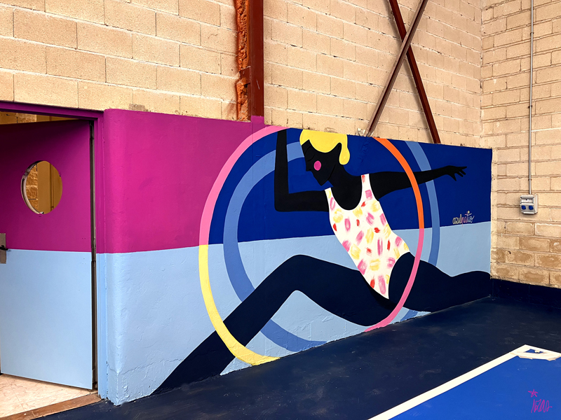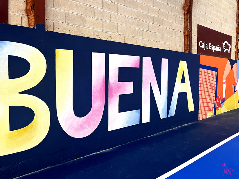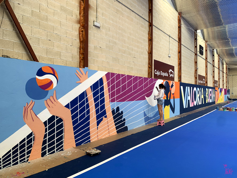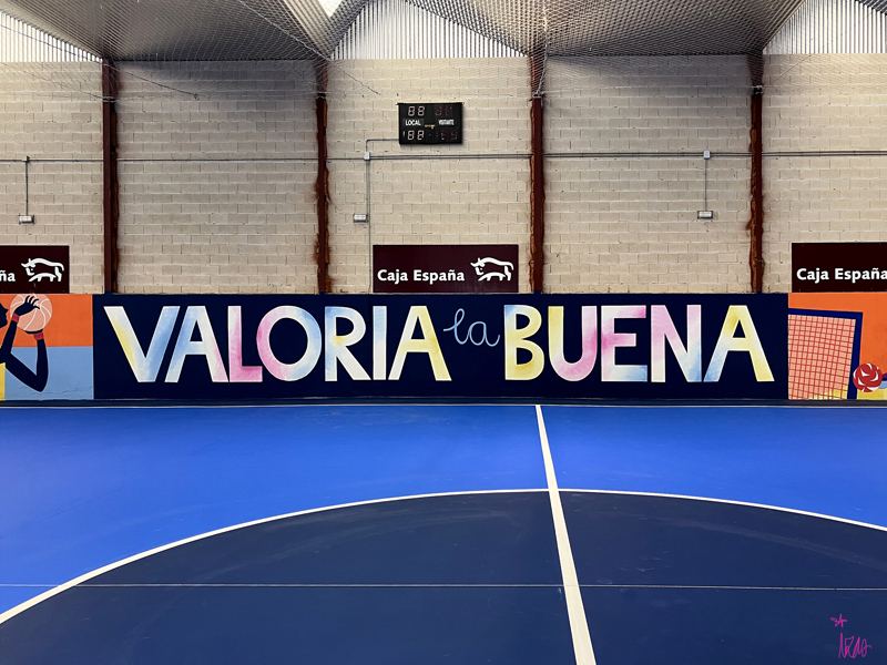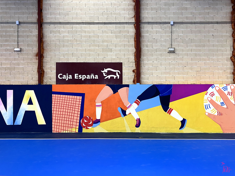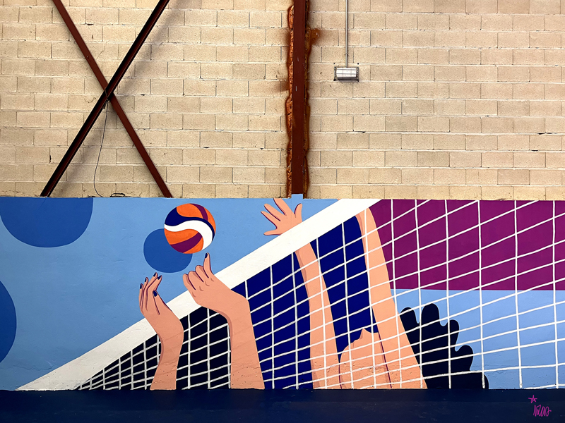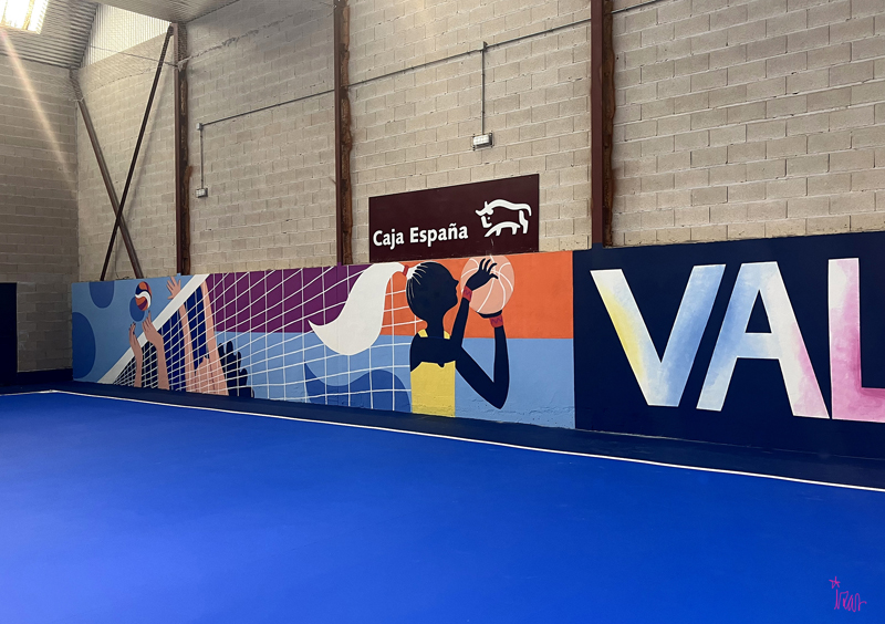 Este diseño dinámico refleja el espíritu del deporte, la participación y la vida activa, llenando de color y vitalidad el polideportivo.
